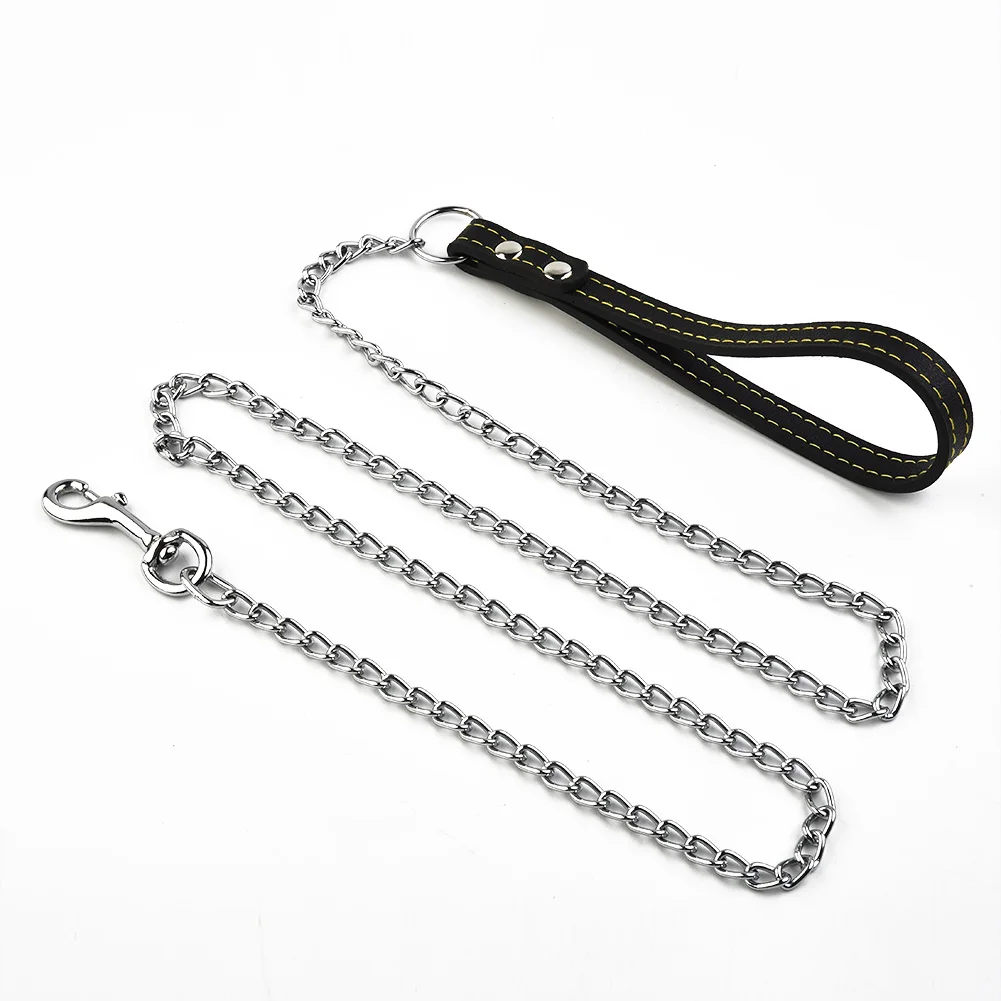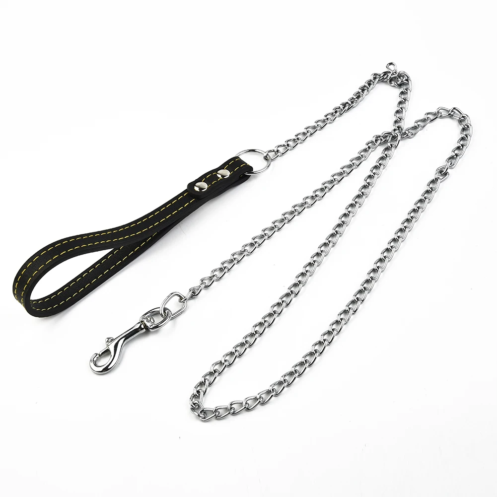 Chaîne en métal laisse pour chien poignée en cuir collier pour chien corde de marche pour chien fournitures pour animaux de compagnie contrôle fort Durable.